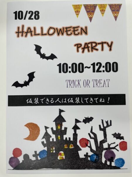 金山キャンパスでは10月28日(金)10:00~12:00でハロウィンパーティーを計画しています。