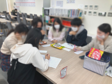 A.「お昼ご飯を食べた後にみんなが集まってカードゲームをやっていたので、そこに参加しました。それがきっかけで少しずつみんなと話せるようになりました!」