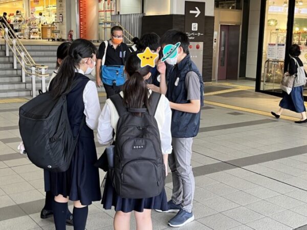 アンケート調査を実施するため、倉敷駅で街頭インタビューを行ったチームもありました。