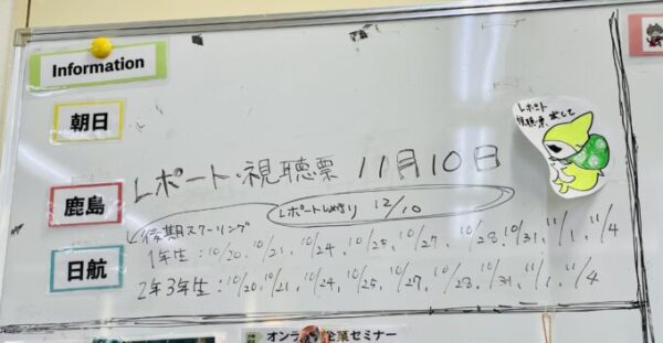 提出物等のお知らせはキャンパスのホワイトボードに記載されていますので随時チェックを忘れずに♪