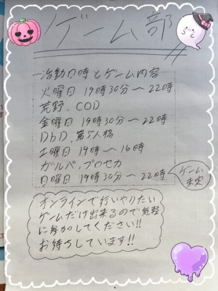 ゲーム部はその名の通り、皆でゲームを楽しむ部活です!