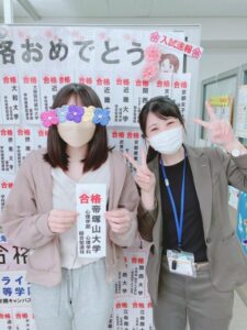 甲南女子大学・帝塚山大学では面接試験も課されていましたが、2名ともにマンツーマン指導に加えて「推薦入試グループワーク」「推薦対策合宿(大阪・3泊4日)」にも参加してくれており、入念に面接対策を重ねることで、度胸と自信を持って本番に挑んでくれたことと思います。立派な夢を持っている2名なので、大学にその気持ちがきちんと伝わって一安心です🤗