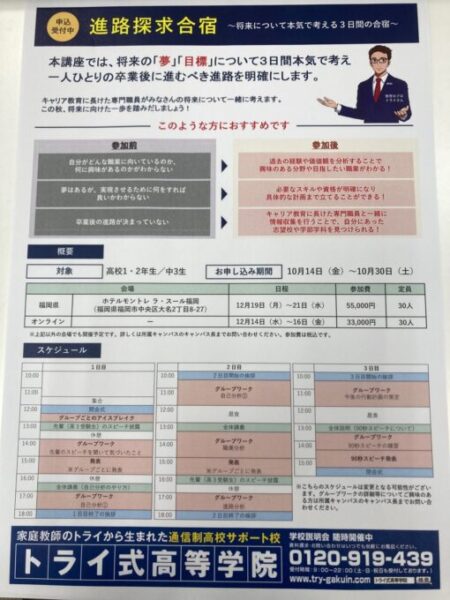 将来に向けたことを考える機会として進路探求合宿を開催しております!