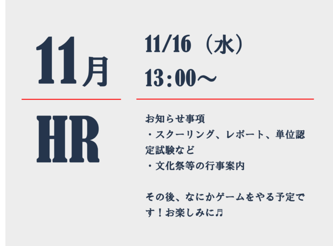 11月のホームルームについてご案内いたします!