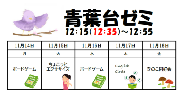 11月14日からの青葉台ゼミスケジュールです。