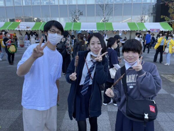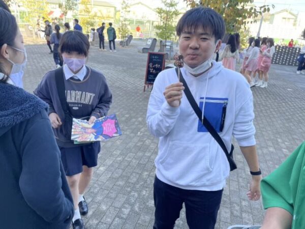 卒業生がやっている屋台で、お肉を食べたり、チェロス、たいやき、肉まん、から揚げ、チョコマシュマロと、各々食べたい物を美味しそうに食べていました( *´艸`)
