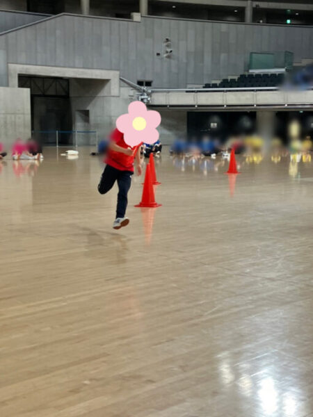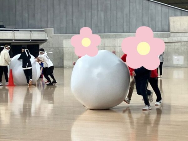 大玉転がしではなるべくコーンを小さく回ろうとみんなで協力してゴールを目指していました!