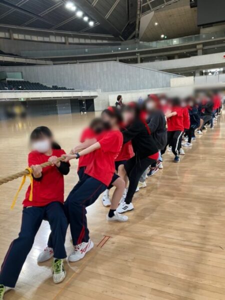 綱引きでは30名で力を合わせて力いっぱい引っ張りました!