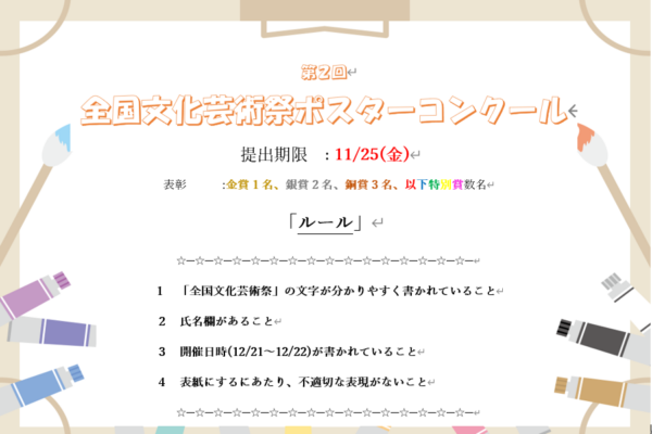 12月21~22日の全国文化芸術祭開催に伴って、