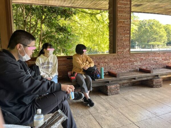池を見ながら、お昼ご飯をみんなで食べました^^