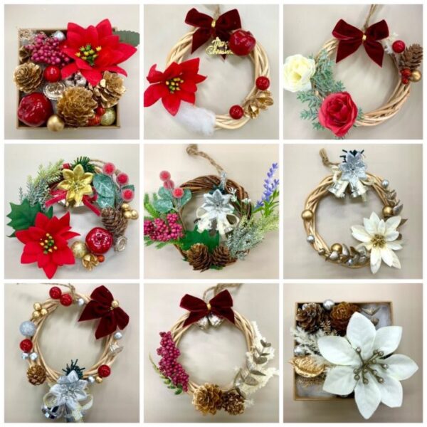 今月はみんなでクリスマスミニリースを作りました🎄今回はキットで用意はせず、好きなパーツを選んで自分だけのオリジナルリースを作ってもらいました👍