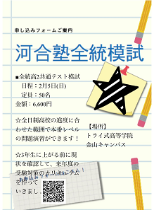 これまでは高校3年生の方限定で、トライ式高等学院を通して全統模試を受けることができていましたが、今回高校2年生の方も申し込み可能となりました!!✨