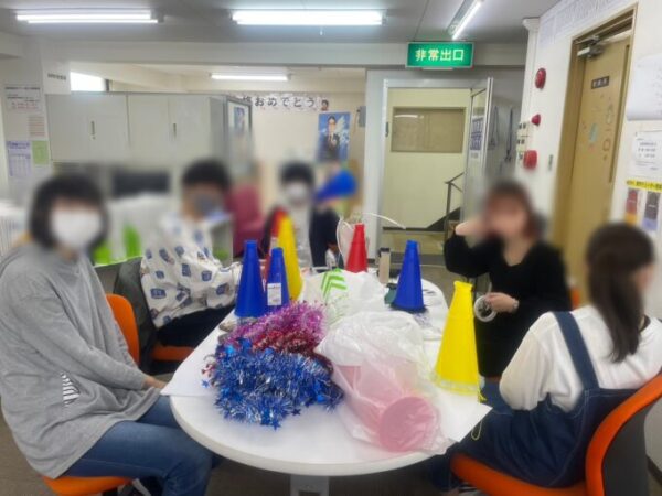 そんなわけで…大和八木キャンパスでは応援のメガホンを作りました!