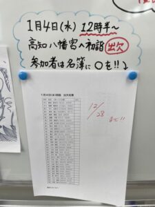 1月4日(水)、12時半から高知八幡宮へ初詣に行きます。