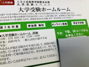 トライ式高等学院限定企画「大学受験ホームルーム」を実施します。