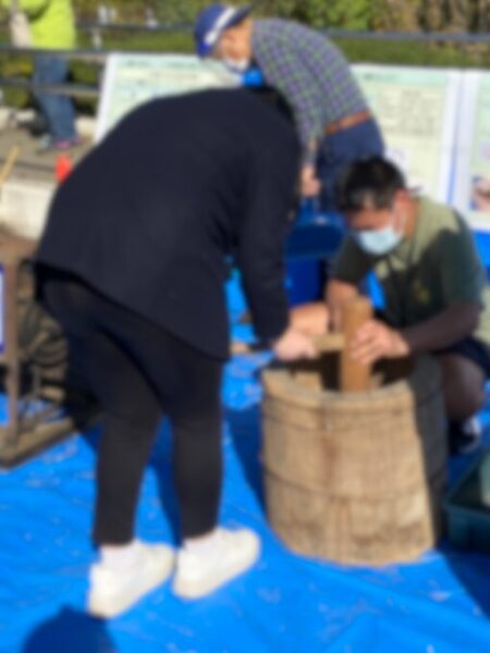 こちらは臼と杵を使った籾摺りの様子です!