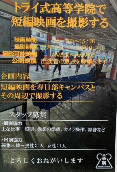 皆さん、今キャンパスのあるメンバー達が映画製作を始めているのをご存じですか?