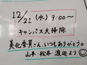 キャンパスの年末大掃除を予定しています🧹!