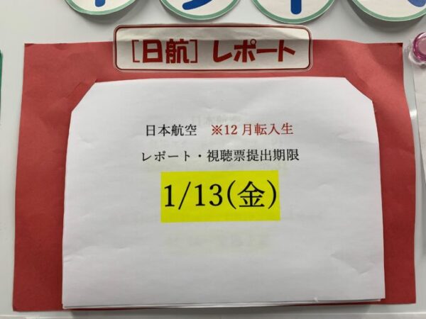 日本航空在籍の生徒さんのほとんど(12月転入生を除いて)が