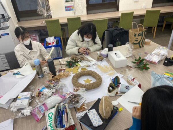 そんな今日この頃、渋谷キャンパスではみんなでクリスマスリース作りをしました★
