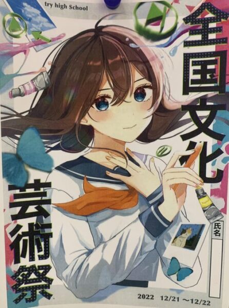 なんと、12月21日(水)にエディオンアリーナ大阪(大阪府立体育館)で行われる大阪・和歌山文化祭では会場でパブリックビューイングも行われます!茨木キャンパスの生徒の作品も出品予定です♪中等部の生徒さんも出品してくれました!