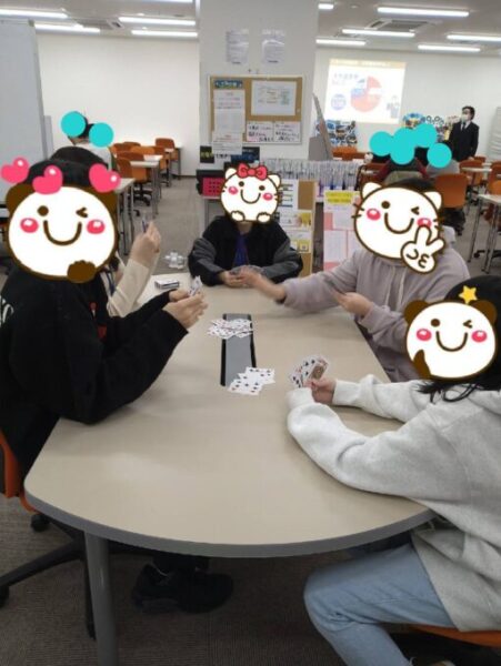 生徒さんは、在校生のみんなと一緒にトランプやUNOなどの