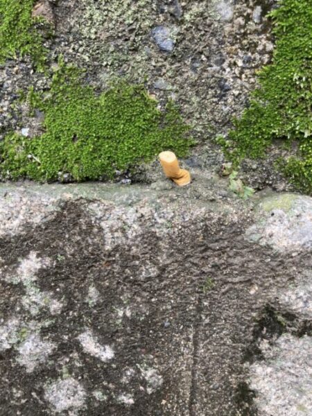 きのこが生えているのかな?と思うような。。。穴にタバコの吸い殻が刺さっていました。