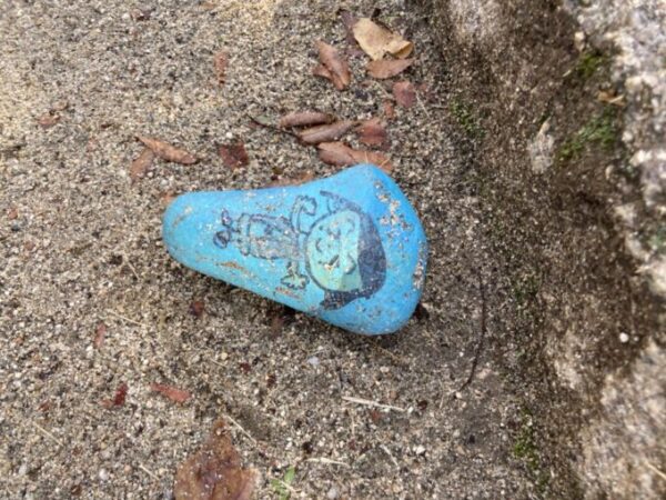 可愛い落とし物も見つけました。石に描かれた作品です。