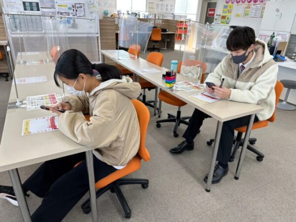 さて、新年早々生徒たちは自習ブースの机に向かっていました。