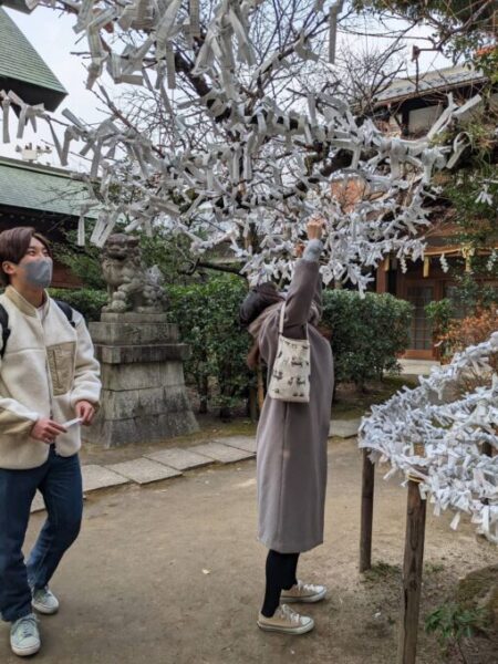 学問の神様ということもあり、受験生も一緒にお参りしました。