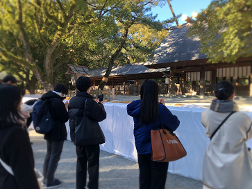 みんなお目当ての本宮に行くと、平日にも関わらず多くの参拝客が集まっていました!