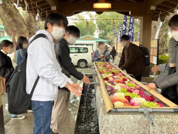加藤神社では綺麗な花手水を見ることができ、心も清められました。