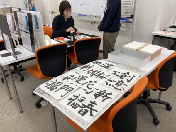 さて、先日、書道イベントを行いました。今回も書道展に出展するため、作品作りに取り組みました。