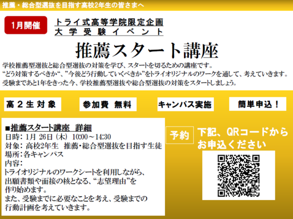 高1生で推薦をすでに検討している生徒さんも参加可能です。