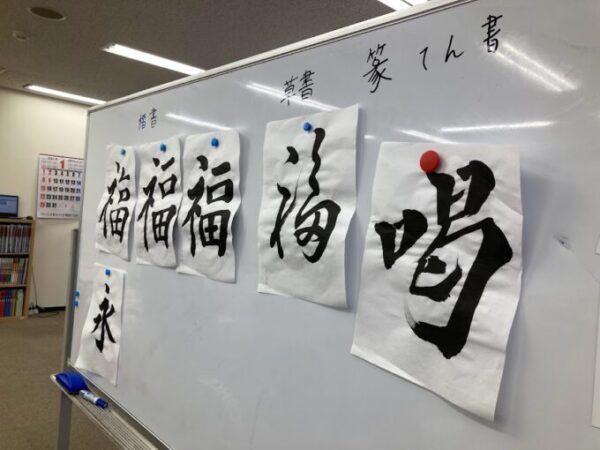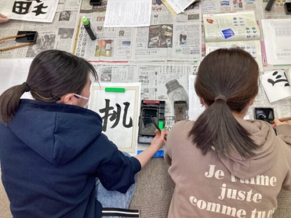 どの書体で書こうかな~と迷う生徒たち(^^)