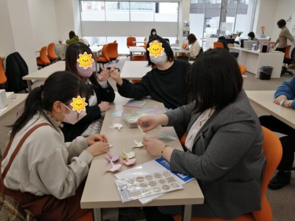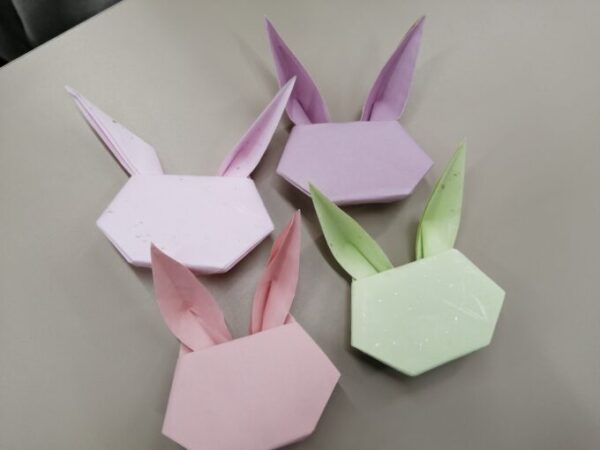 何やら楽しそうにウサギを折り紙で折っているスタッフと生徒たち👀