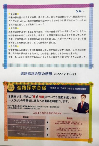 12月に開催された2泊3日の進路探求合宿