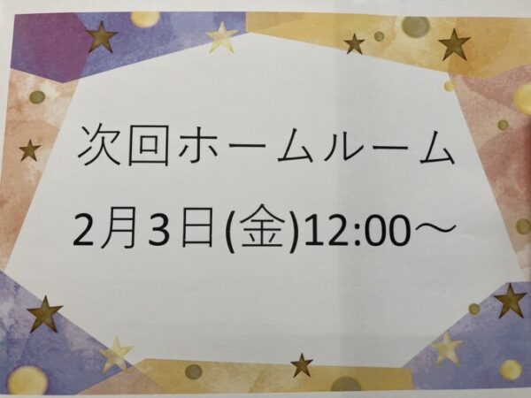 スクーリング直前のホームルームになりますので、参加して気を引き締めていきましょう~!!