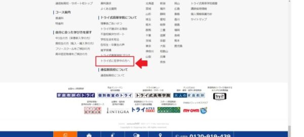 ずっと下にスクロールして、「トライに在学中の方へ」をクリック!