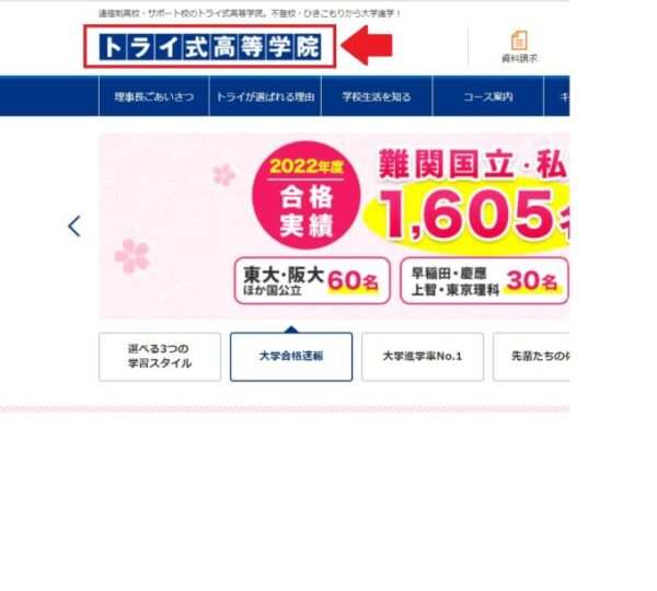 下記のように、ページ左上の「トライ式高等学院」の部分をクリックしてみてください。