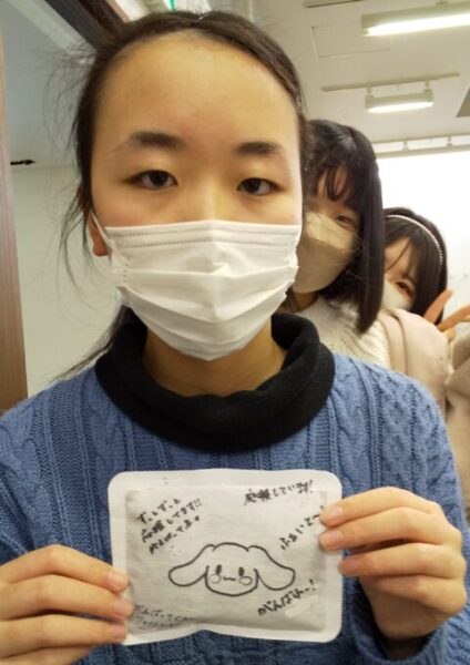 受験に備え前日のうちに現地入りする先輩に、1,2年生の子達が応援カイロを作ってくれました!