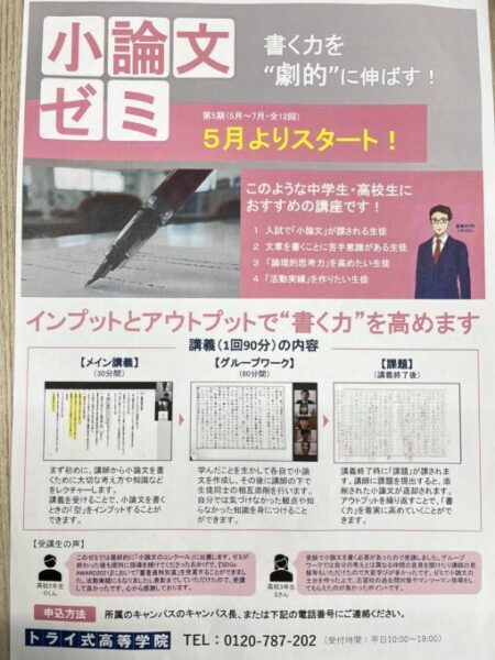中学生・高校生を対象に小論文ゼミを開催します!(^^)!