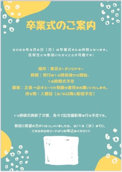 ちなみに、3月6日は飯田橋キャンパスは休校で、授業はございませんので、お気をつけください!!