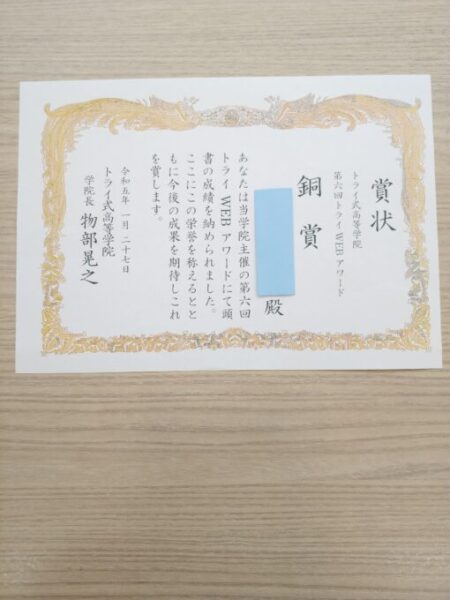 『トライ式高等学院第6回トライWEBアワード』にて