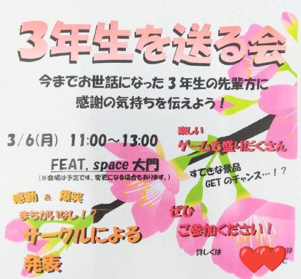 本日は3年生を送る会のご案内です🌸