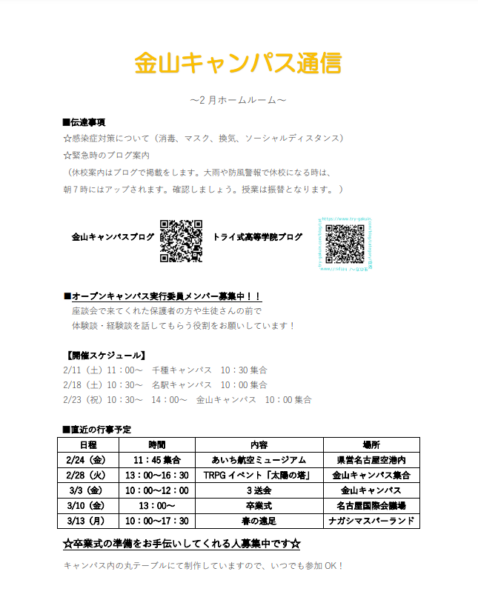 もうすぐ3年生が卒業しますが、卒業までにまだまだイベント等ありますのでぜひ参加してください!!