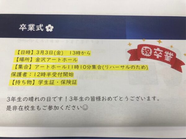 持ち物を忘れずにみんなでいい卒業式にしましょう!!