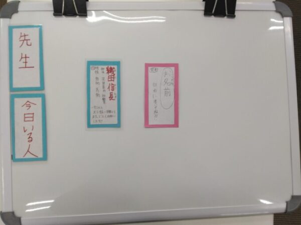 その日キャンパスに誰がいるのか分かるように、みんなが登校した際に名前のカードを貼ることにしました(*^-^*)
