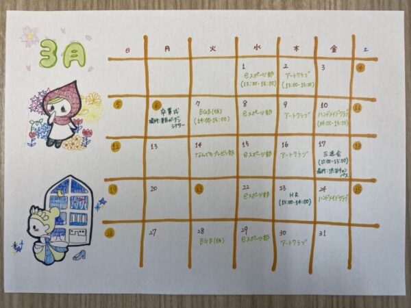 卒業生の学生スタッフが3月のイベントカレンダーを可愛く作ってくれました★
