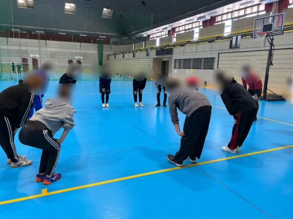 まずは、みんなでしっかり準備運動(体操)